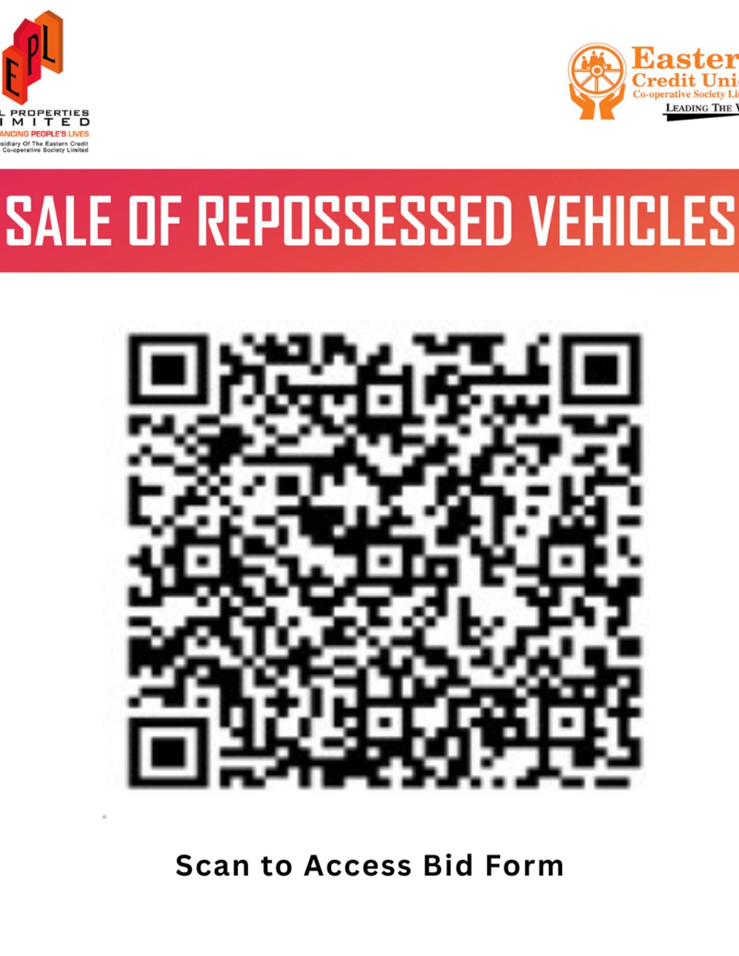 EPL Properties Limited acquires repossessed vehicles from its parent company, Eastern Credit Union. Units are sold “where is, as is” through a bidding process and are located at the EPL Warehouse. Inventory is updated regularly and includes a variety of makes and models. Band right aren't included.